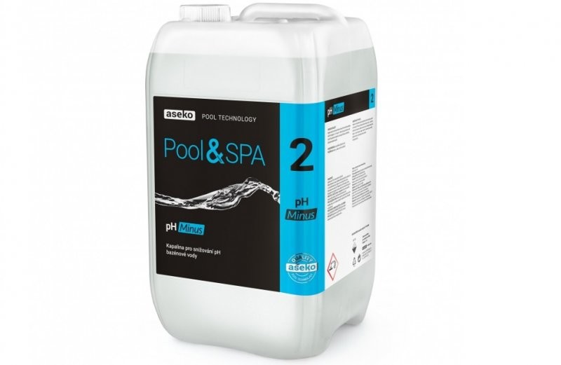 pH MINUSpH minus je kapalina pro snižování pH bazénové vody. Pro vodu s bežnou alkalitou sníží 30 ml kapaliny v 1 m3 vody pH o 1. Tato hodnota je průměrná a může se lišit. Při používání pro dávkování s automaty ASIN Aqua se řiďte vždy příslušným návodem. Pro správné dávkování přípravku pH použijte zařízení ASIN Aqua. Pro bezchlorový přípravek OXYPURE je doporučený rozsah pH vody v bazénu 6,4 – 7,6.Pro chlorový přípravek CHLORPURE je doporučené pH vody v bazénu 7,0. UPOZORNĚNÍ: Kyselinu při ředení vždy lijte do vody!POZOR! Neředit vodou – prudce se zahřívá a vystřikuje! NEBEZPEČÍ: Kyselina sírová 19%, indexové číslo 016-020-00-8. H314 – Způsobuje težké poleptání kůže a poškození očí. P101 – Je-li nutná lékařská pomoc, mějte po ruce obal nebo štítek výrobku. P102 – Uchovávejte mimo dosah dětí. P103 – Před použitím si přečtěte údaje na štítku. P280 – Používejte ochranné rukavice/ochranný oděv/ochranné brýle/obličejový štít. P301+P330+P331 – PŘI POŽITÍ: Vypláchněte ústa. NEVYVOLÁVEJTE zvracení. P303+P361+P353 – PŘI STYKU S KŮŽÍ (nebo s vlasy): Veškeré kontaminované části oděvu okamžitě svlékněte. Opláchněte kůži vodou/osprchujte. P305+P351+P338 – PŘI ZASAŽENÍ OČÍ: Několik minut opatrně vyplachujte vodou. Vyjměte kontaktní čočky, jsou-li nasazenya pokud je lze vyjmout snadno. Pokračujte ve vyplachování. P501 – Odstraňte obsah/obal v souladu s místními předpisy. ÚČINNÉ LÁTKY: Kyselina sírová 19%FORMA: čirá kapalinaÚČEL POUŽITÍ: snižování pH bazénové vodyDÁVKA: Pro vodu s bežnou alkalitou sníží 30 ml kapaliny v 1 m3 vody pH o 1APLIKACE: dávkování zařízením ASIN AQUASKLADOVÁNÍ A LIKVIDACE: Skladujte pouze v originálním obalu při teplotě 15 až 30 °C. Poškozený obal vyměňte za nový. Neskladujte se silnými kyselinami. Chraňte před mrazem. Nevystavujte teplu a přímému slunečnímu záření. Odstranit dle platných českých a místních předpisů. Obal po důkladném vycištení lze recyklovat. Nikdy neodstraňujte spláchnutím do kanalizace!Číslo nebo označení šarže: uvedeno na obalu výrobku. UCHOVÁVEJTE MIMO DOSAH DĚTÍ